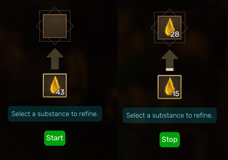 Once everything is set up, open the Refinery interface, select the Liquid available in range of the Refinery (the displayed quantity indicates the size of the deposit), and press “Start” to Begin extracting the Liquid.