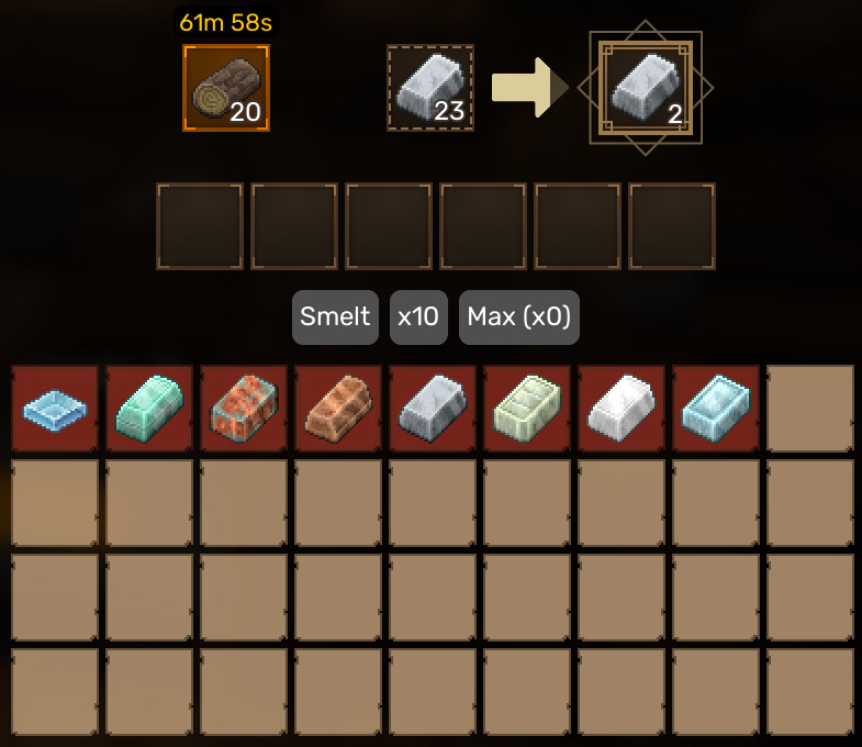 If you have the required materials, press “Craft”, and the Furnace will begin processing the resources into the selected Ignot.